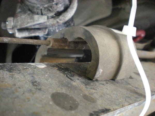 However, it wasn't tied on that tight so it came out from under the cable ties, what I did the second time was put one on each side of the spine running along the middle of the rubber and did it really right. I thought it might affect the brake seeing as it's right on top of the handbrake cable, but it hasn't as far as I can tell.