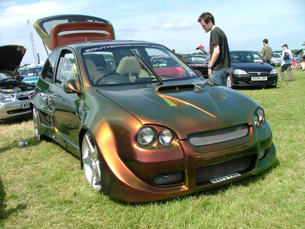 boy racer nasty crack on bonnet son. luvly motor tho.