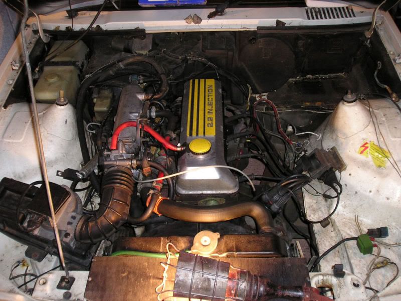Picture of the engine bay before any work was done.That is a 2.2 engine.