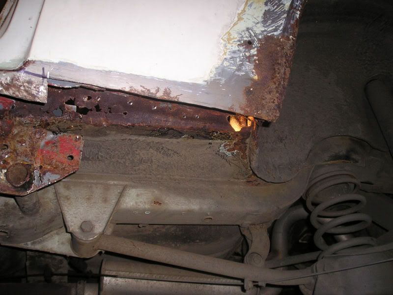 Car was looking good on the outside but you could see the road through the passenger floor pan and the crack in one of the top suspention plate was getting bigger!!!