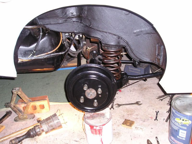 More paint - more new parts. New drums, pipes, cylinders, shoes. Uprated springs. Three of the four original ones were