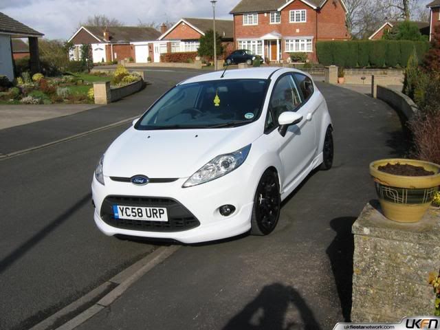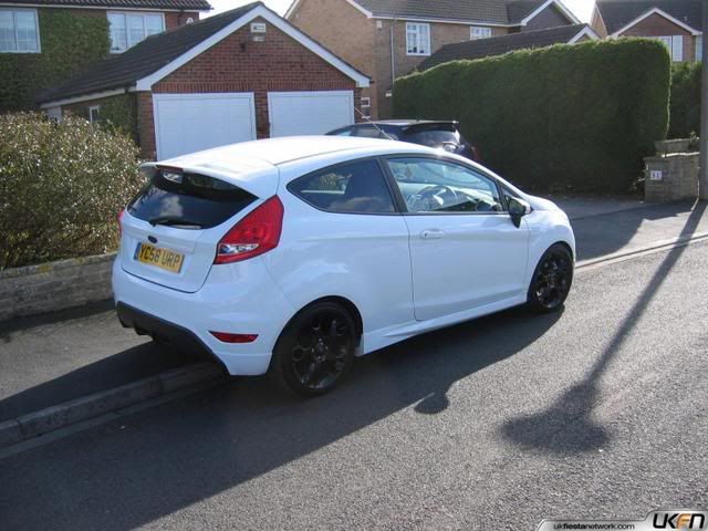 some lad on ukfn posted these pics up of his new fiesta, looks awesome i think. he had the original 17's powdercoated black which look