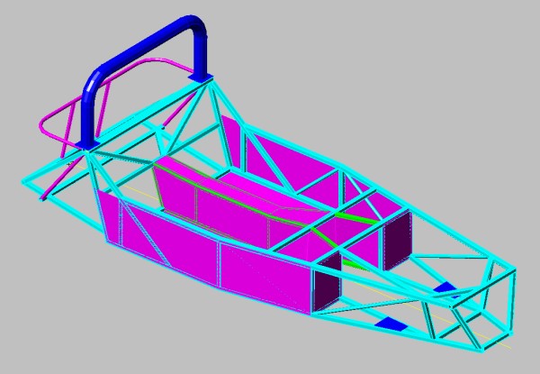 Here is a CAD image of the chassis. Almost identical to the MK and again, heavily based on Colin Chapmans original design.