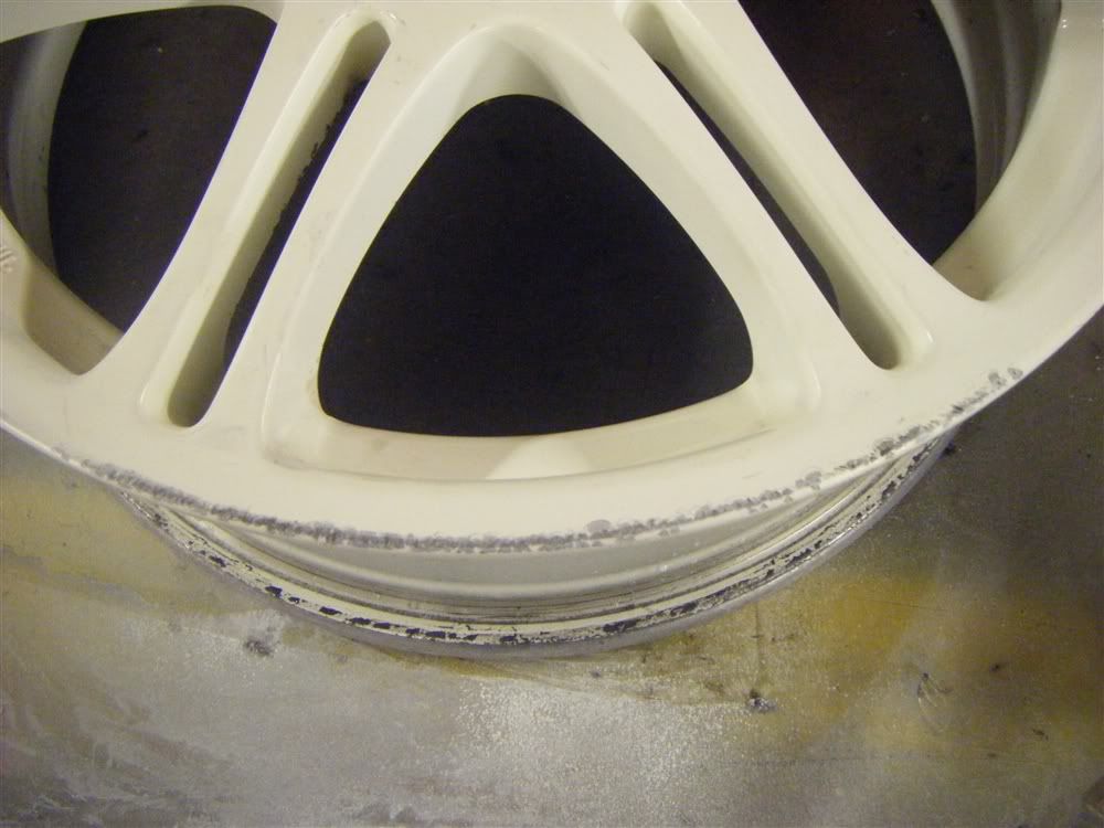 then the rest of the rim was gone over by hand to remove all the little chips and key the surface for etch primer.