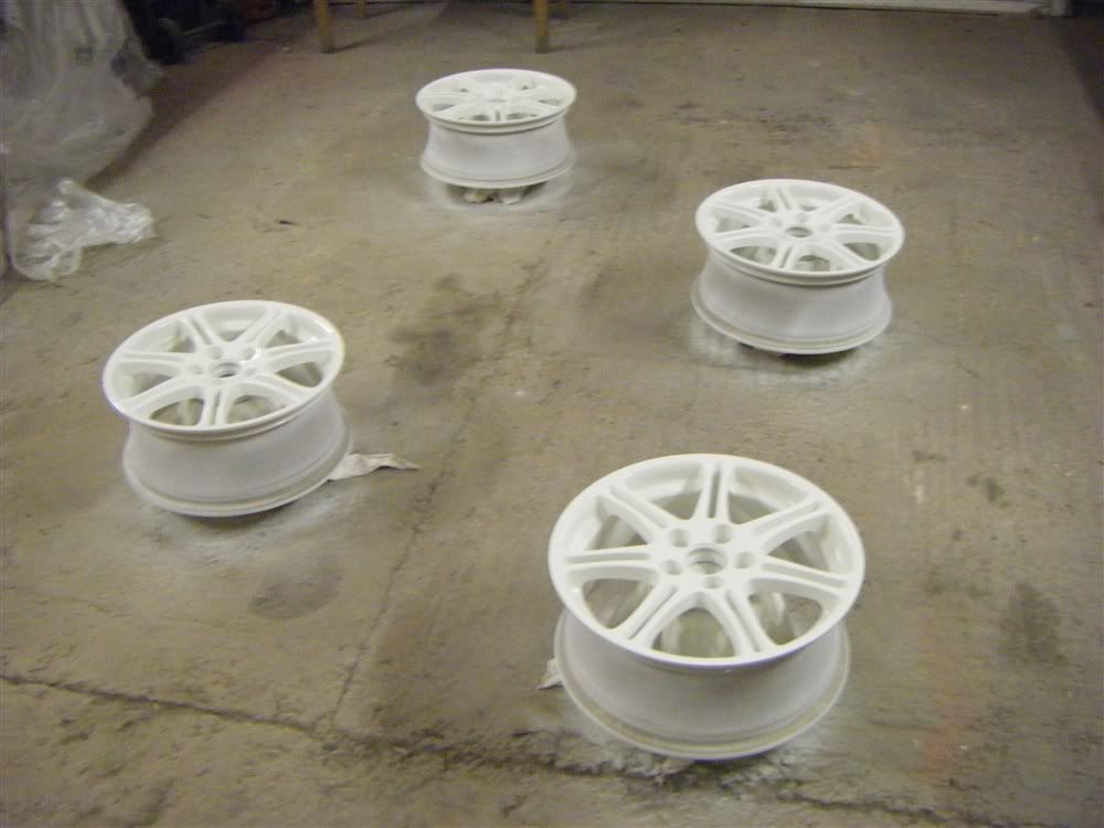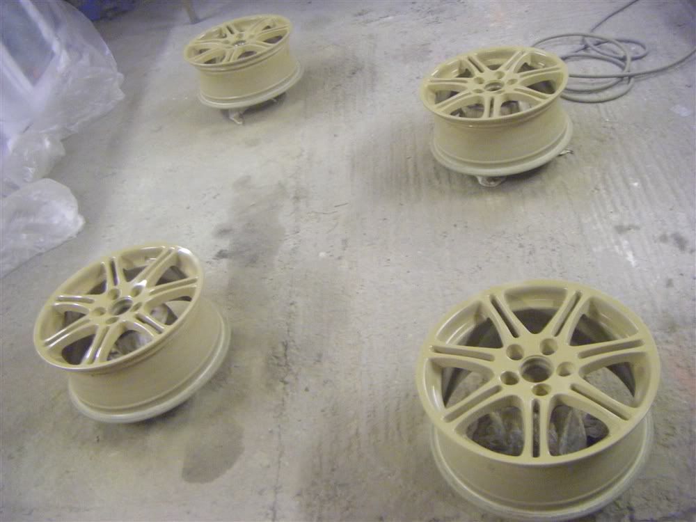 next jobs on the list are let them harden completely, probably until the weekend as i want to make sure they are 100% hard. then apply some coats of poorboys wheel sealant, apply stickers to centre caps, and take them to have tyres refitted and hope and pray they dont scrape the paint off!! more pics at the weekend, thanks for looking