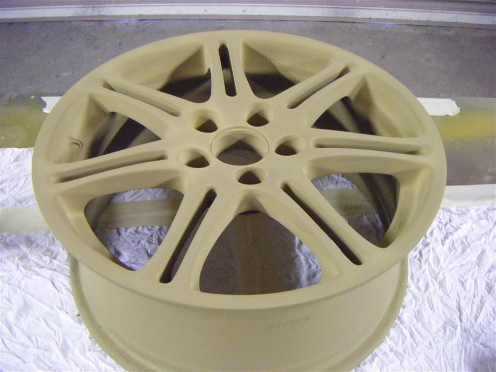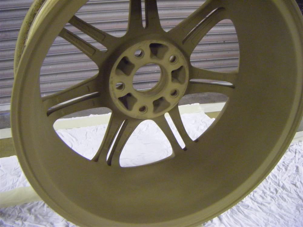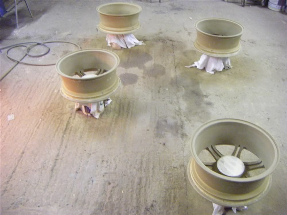 all the wheels and centre caps were then done inside and out, given a mist coat then another 3 coats of the primer using my devilbiss primer gun.