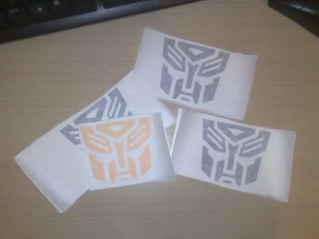Got a mate at work to bash these out for me, seeing as everyone calls my car bumblebee, thought it would be cool to stick a couple of these on, was thinking one above each side repeater and one on the bottom corner of the tailgate, ther just a bit bigger than a tax disc in size