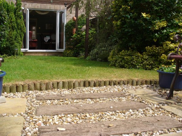 the bit at the bottom of the back garden is only about 4" lower than the rest of the garden, but even that makes enough of a difference for it to look neat