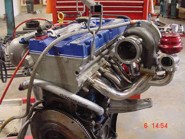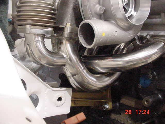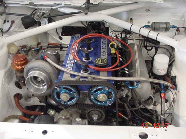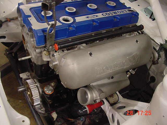 Here's the trial fit of the engine to make sure the manifolds clear the Grp A engine mounts. Will be on the dyno VERY soon. Note super-duper special turbo (if I told you the spec, I would have to kill you :cry: ).