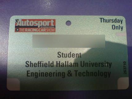 I'm going up on Wednesday, working on Swansea Uni's Formula Student stand for both trade days.
