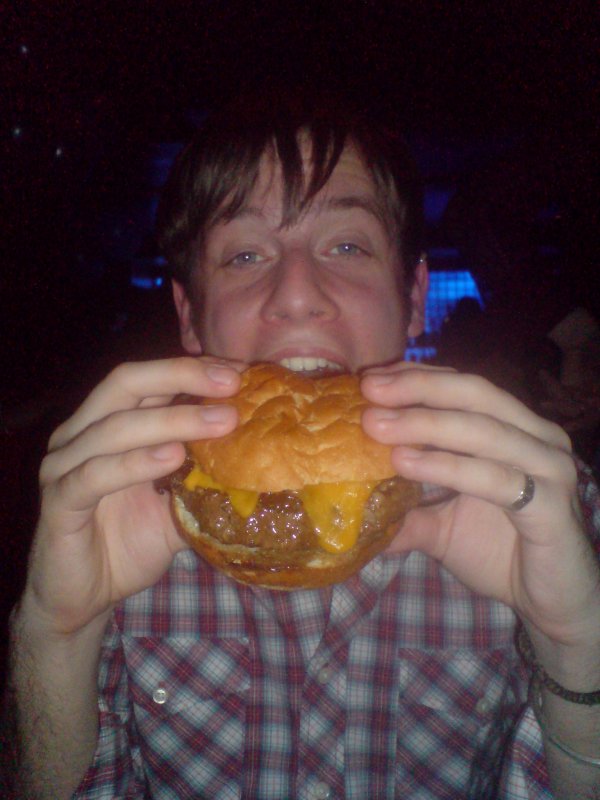 me eating the tastiest fucking burger ever @ Hard rock cafe in march