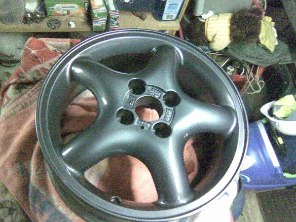 400 grit wet and dry, sand them down roughly just to get most of the wheel keyed. Halfords grey primer nice coat, leave to dry or heat gun them. Then get the black halfords spray and heat the wheel again. Keep everything nicw and warm. Nice coat of black. And they came out awesome!