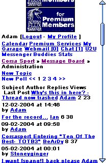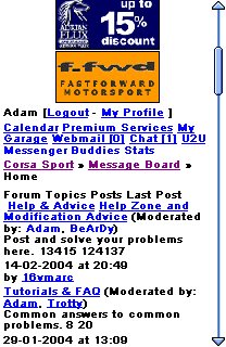 You are not logged in and may not post or reply to messages. Please log in or create a new account or mail us about fixing an existing one - register@corsasport.co.uk There are also many more features available when you are logged in such as private messages, buddy list, location services, post search and more. |