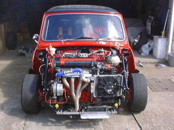 ive seen a mini with 400 bhp running twin R1 engines