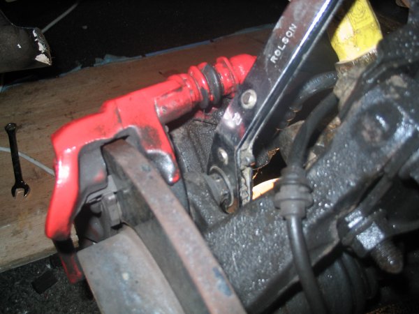 had a go at the brakes today. the two bolts are correct. you have to take them off otherwise the caliper can't come off. and you need the calipers off or you can't get the disc off. pain in the arse because that bolt is fucking hard! couldn't manage it so had to put calipers back together again. round 2 tomo when i come back with better tools.