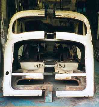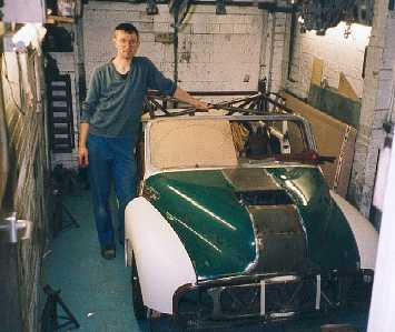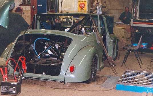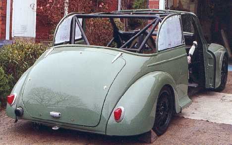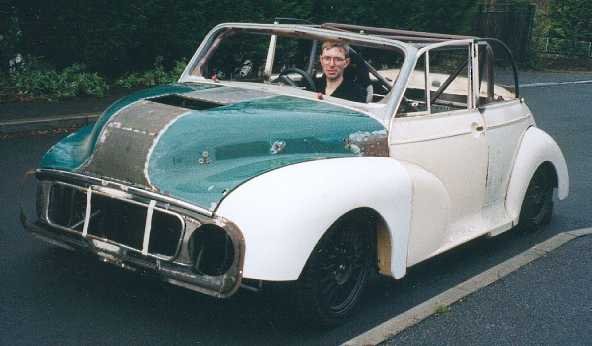 Body ..................................Morris Minor convertible, widened 178mm with flush fitting bonded in windscreen in home made surround, composite doors, wings, front panel, boot and bonnet. Body work by Robin