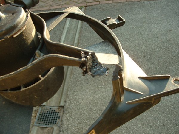 fans come loose and got intimate with the exhaust manifold
