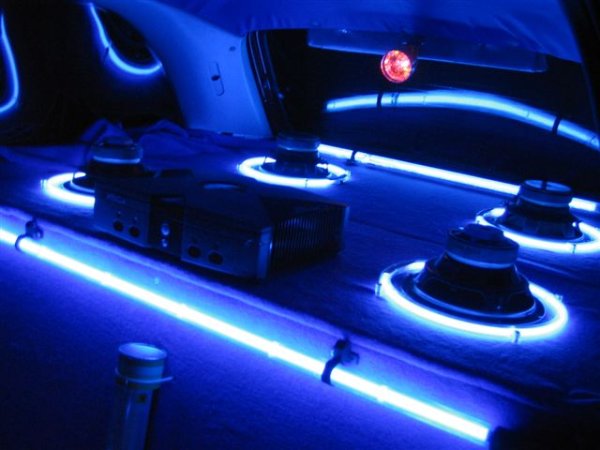 Clear fibreglass moulded with blue neons mounted underneath, saw it on the Blaubunkt Mk1 golf demo car