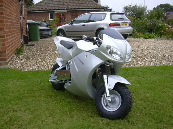 looks good mate. my house mates bro has a home made mini moto, it had half a m=bmx brake as a brake and it dosent stop well, i nearly crashed into a fence because of it lol
