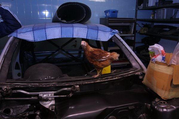 Bulkhead was in the way for the brakes and also probably the engine however I decide to aspirate it. The chicken lives next door but we invited him in for company