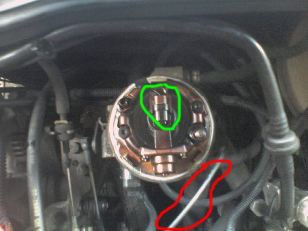 The brown thingy circled Green is the power for the single injector