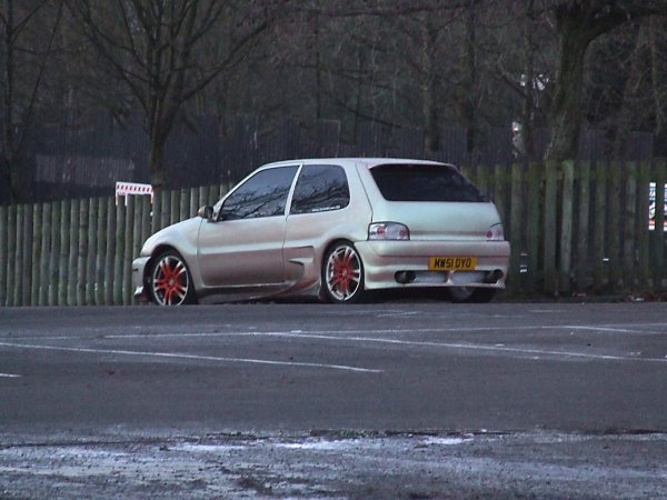 poor car and WTF is going on with them wheels? seen a saxo in wigan with wheels like that but there white and orange looks shit any of the other wigan lads seen this?