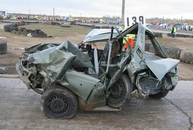 this car should never have got on the track. obviously the inspectors at the bangers are bot doing there job properly