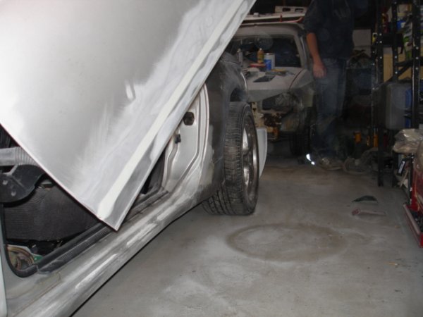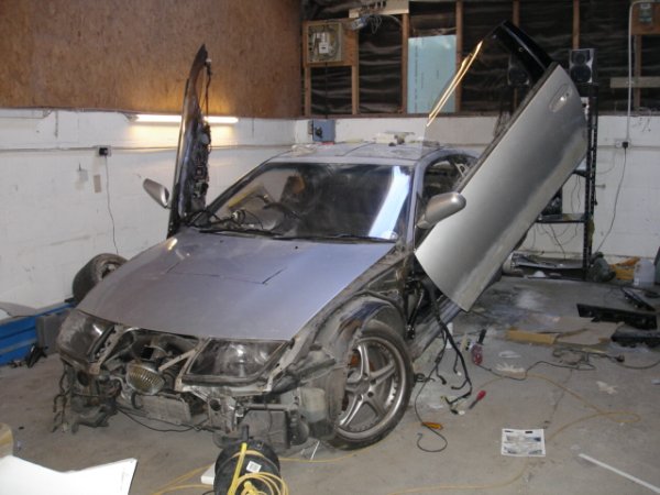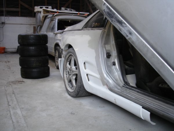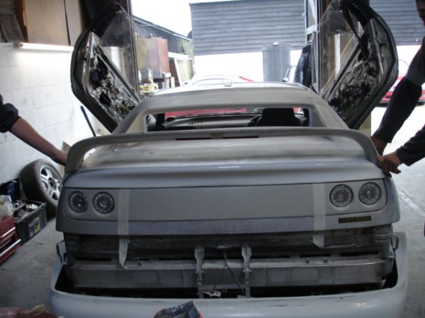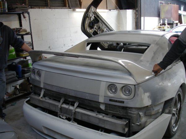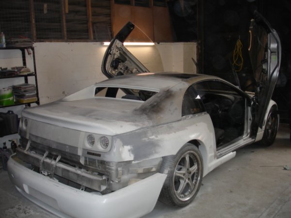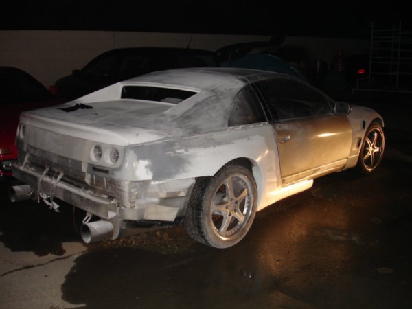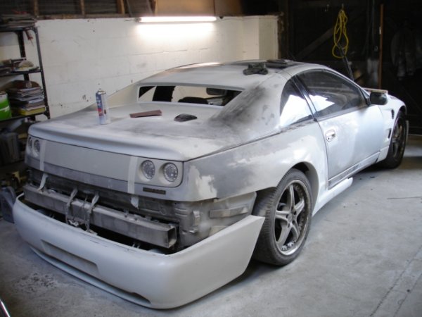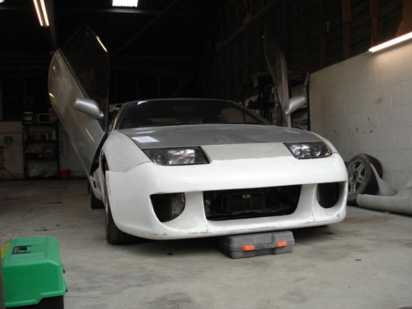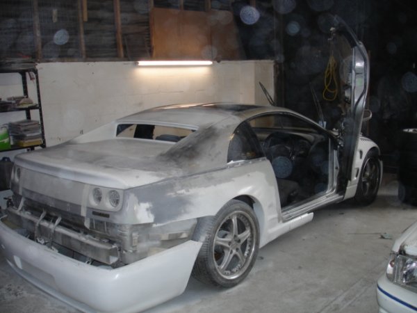 well some of my mates decideed to start a little bodyshop buisness and have started to mod a nissan 300zx, its not goin too bad at the mo, i am helping out every now and then, mainly maing teas but hey lol. it will be painted in dodge viper metalic blue