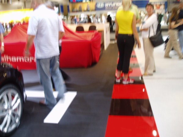 there was a dark haired girl on the alfa stands next to the merer? (sp) she waas stunning, but apart from that i was dissapointed lady wise
