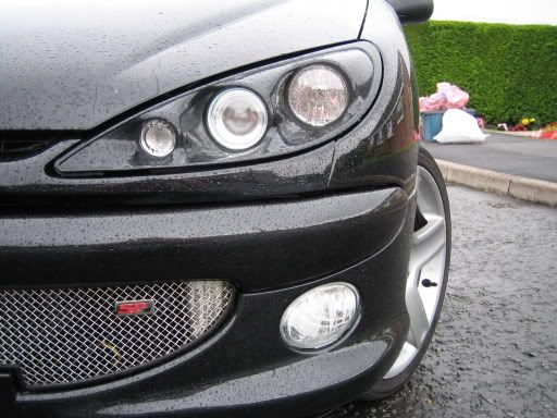 The car is now colour coded thanks to picking up a few bargains!! Picked up a Sports Front Bumper, 180 Rear Bumper and Colour Coded Side Mouldings for £150, and then picked up an SP Front Grill for £45!! I then found a local guy breaking a 206 and managed to get a Phase 2 boot strip and door handles for £20!! And all of these were in my colour, or the later shade of Black (but thankfully theres no real difference) so I magaed to colour code my car for £170, and fitted it all with my mate!! Here are the pics: