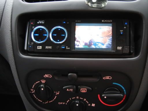 I also picked up stylish new headunit off my mate!! It’s a JVC KD AVX 1 and cost him £400!! Hes moving to USA this week to do a footy scholarship so sold it me for a cut down price of £150!! Its awesome and play DVDs/MP3/CDs and has a 3 ½ inch screen that is crystal clear!!! I definitely recommend this headunit, and my girlfriend loves it as she can watch her favourite DVDs while were driving along!! Here pics: