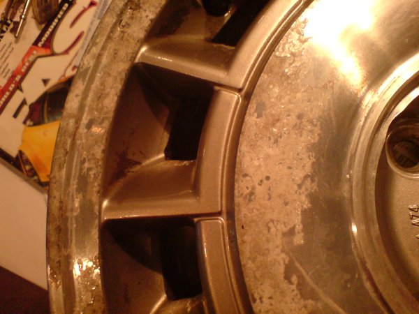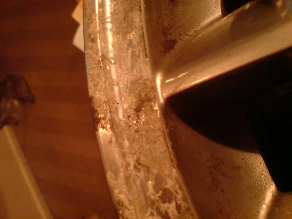 this is how the wheels were before re furb- laquer peel, corroded, not curbed, few deep scratches though.