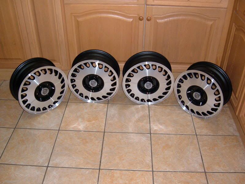 set no3; 6x14", et49, 4x100pcd. Retro look Astra GTE alloys,(they never looked this good when they were new!!!), full pro refurb, with black powdercoated detailing areas and a diamond cut & laquered face. Finished with a set of Porsche center cap emblems. Looking for offers around £300ono