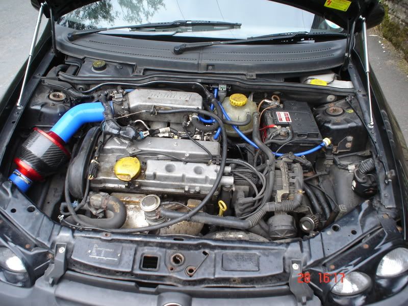 oh, oil breather, when you fit an aftermarket inlet (or you could just do it for good measure) theres a breather hose that goes from rocker cover (on the right) to the air inlet trunking round the back of the engine, anyway mantzel's etc get rid of the trunking so you need a baby K&N or similar to filter its oil breathing, in the engine pic just left of the secondairy air pump. (eco tec)