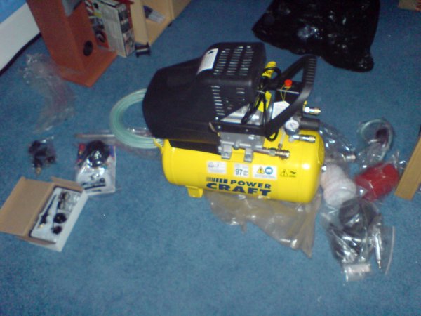 Should make my life much easier. Comes with a load of bits too, including air gun, gravity fed spray gun, air brushing kit and more.