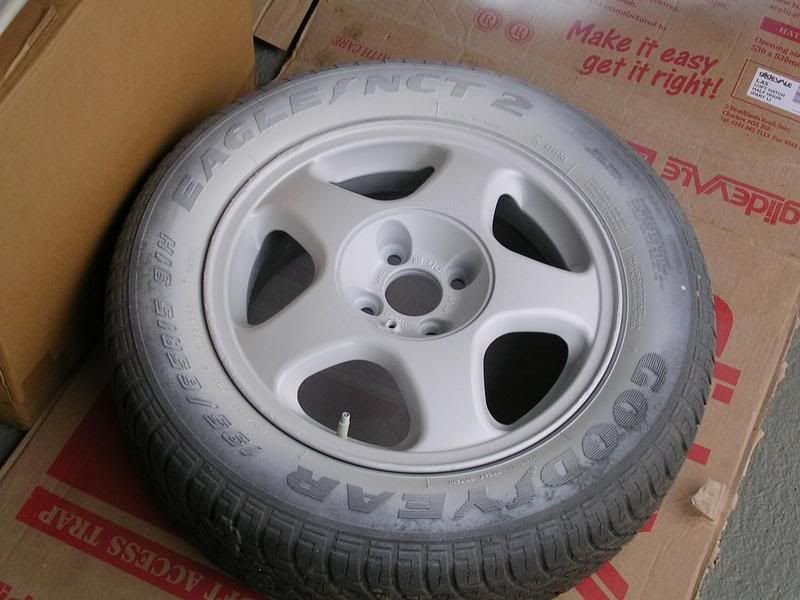 sticking these on when they are finished some vectra five spokes sprayed white and before anyone says i am getting new tyres put on so thats why i didnt mask the tyres up