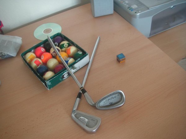 Golf bag, punch bag, pool balls and more ;/