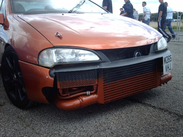 not keen on the tigra turbo where hes sprayed his intercooler the same colour as the car