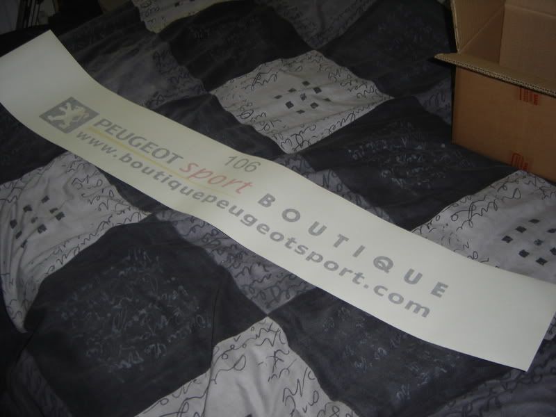 Well today it arrived and well its a bit, errrr WHITE. :doh: Not really sure what to do with it at the moment, cant imagine it suiting a red car. It would have looked awesome on my old white Rallyes. The '106' writing is part of it by the way, there is a cut in it to tear it out and it should fit straight on.