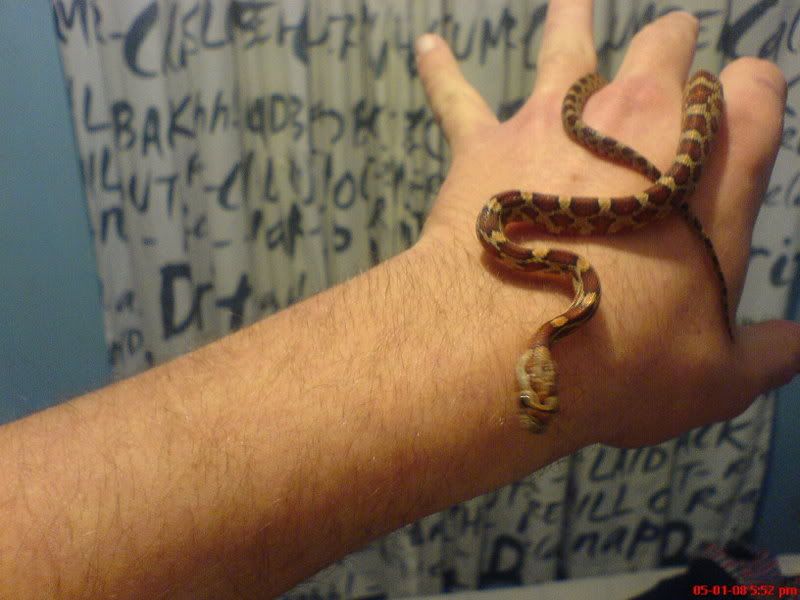 fort i would show you me little baby snake, got him on saturday. He is called kane and he is a corn snake.
