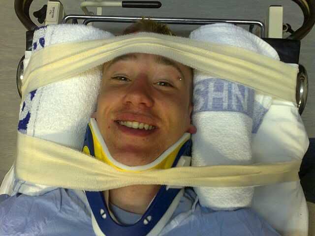 Nothing broken but just badly bruised neck bits (cant remember exactly what they said) and a bad case of concussion which lead to vomiting, hallucinating and general fucked up-ness for 2 weeks. Nice.