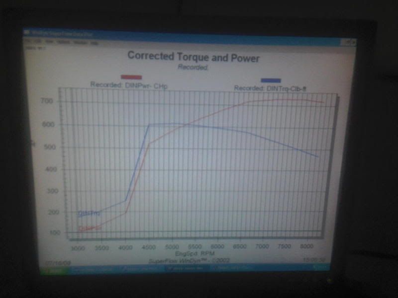 Peak figure seen on screen as it failed was 793bhp and 675lbft, but they dont have a graph for that run.