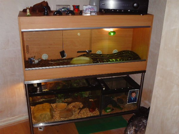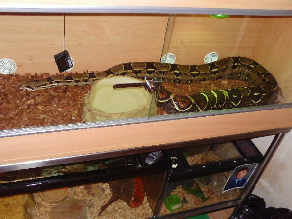 that snake looks tiny in that vivarium (sp?) fuck getting it out when its 10-12 feet long! How much does she weigh at the moment (at a guess)