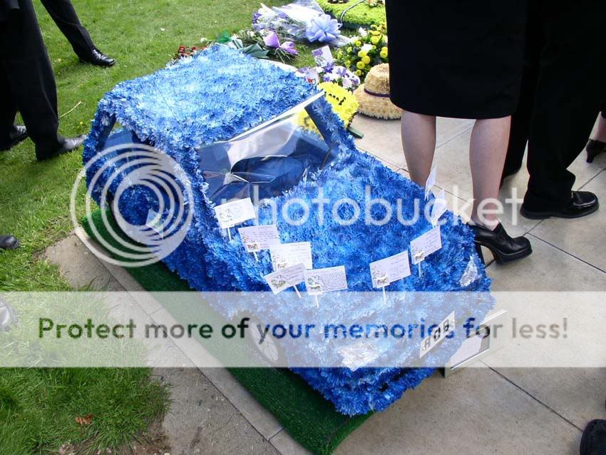 Basically a memeber passed away and they basically got in touch with family and asked if they'd be able to go to funeral.. and a big number of people off the forums turned up, all in suits, with various objects, such as fiesta made out of blue flowers with messages from all the members etc on it