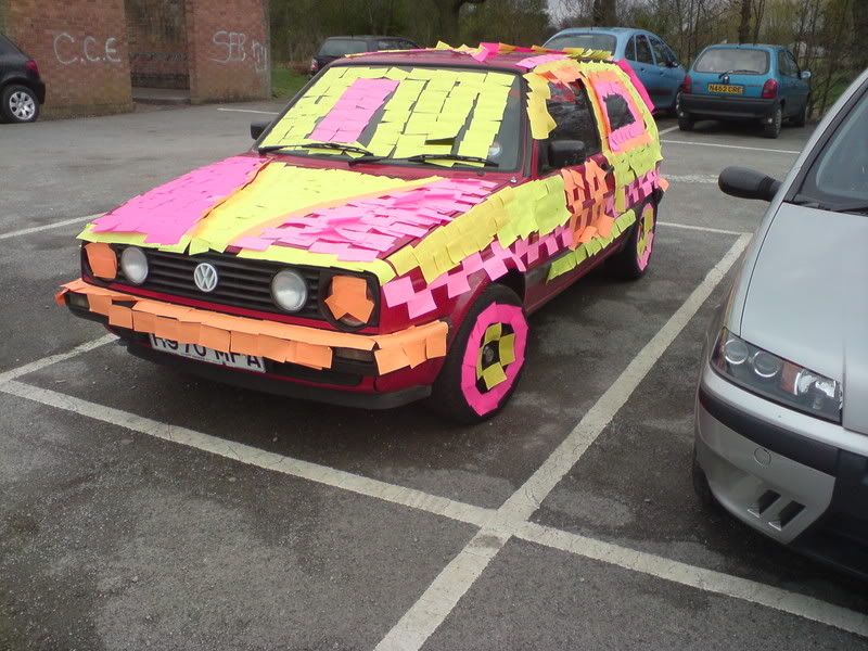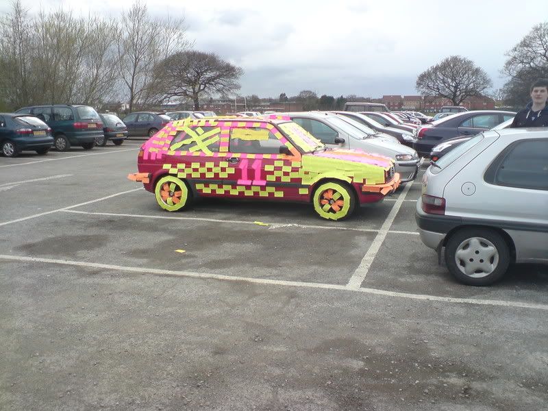 We got bored last year so posted'd a lads car at college.