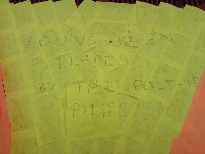 And for April fools (unfortunately i had left), the guys i worked with covered everything of his (including desk and desk contents, spare shoes, photo in the hallway) in yellow sticky notes, but so tight they used about 10000 and spent the night before setting it up