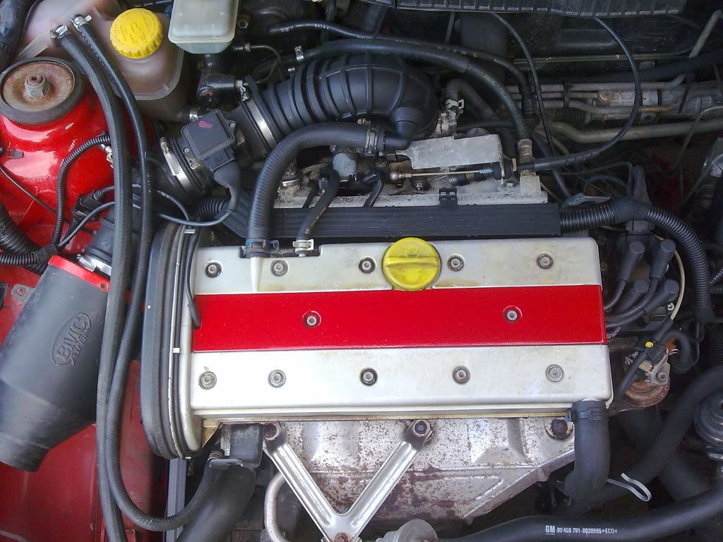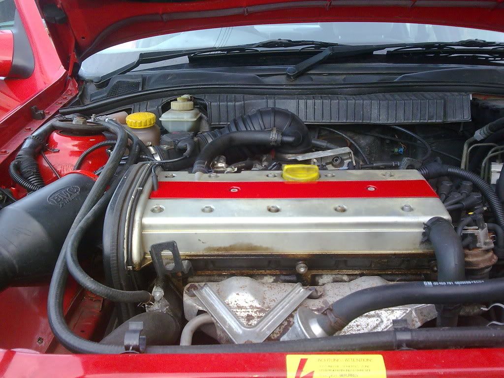The plug lead cover was slightly shitty so i sanded it, primed it and had a choice of either red or white paint. I went with red. The rocker cover gasket is leaking so when that off i'l paint the rocker white.
