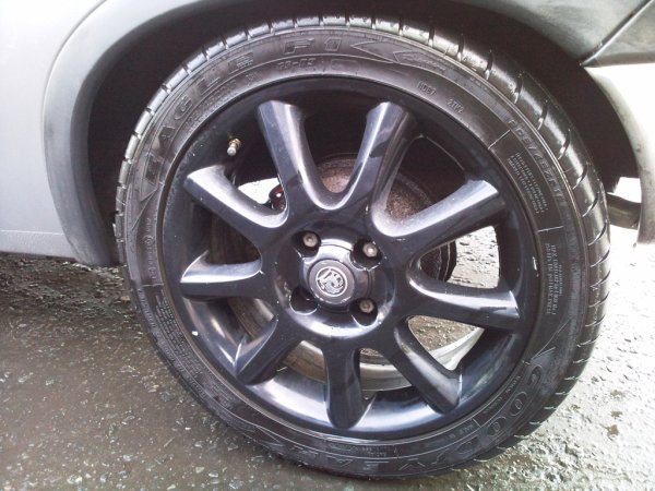 Rear Tyres - are like new (Goodyear Eagle F1 and a Bridgestone Turanza, Front Tyres - 1 needs replacing, other is fine, they are Dunlop SP Sport 9000 and a Avon ZV3? Dunlop needs replacing, Avon ZV3 is part worn, but looooads of tread left