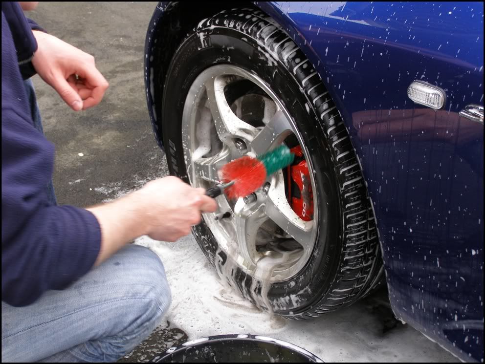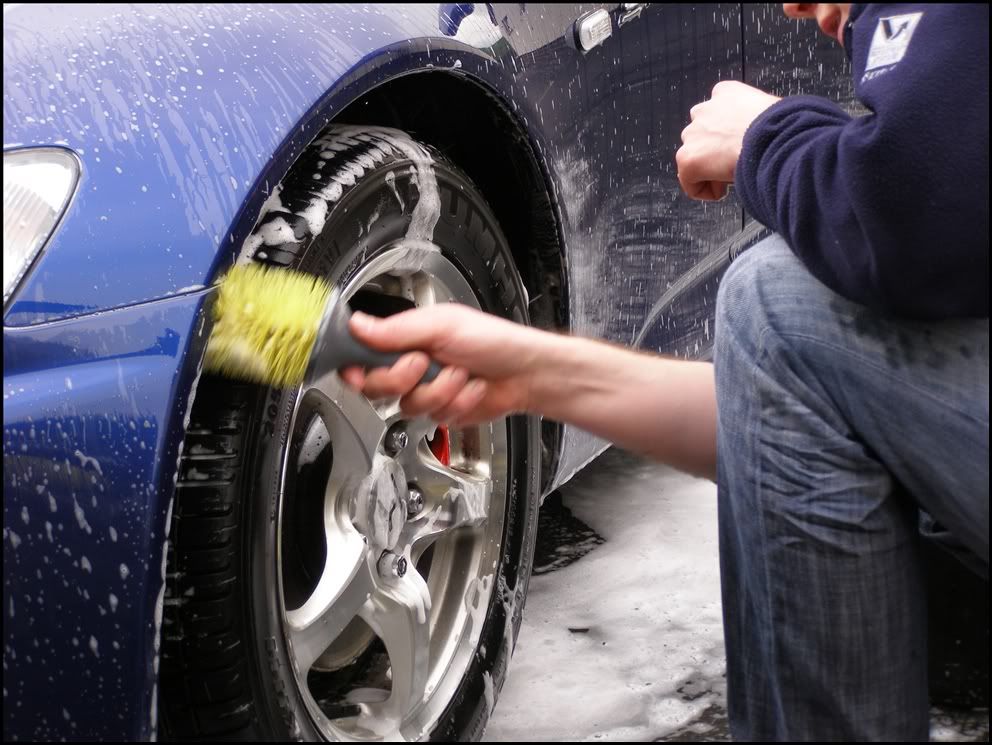 The arch liners and wheels were cleaned with various brushes.