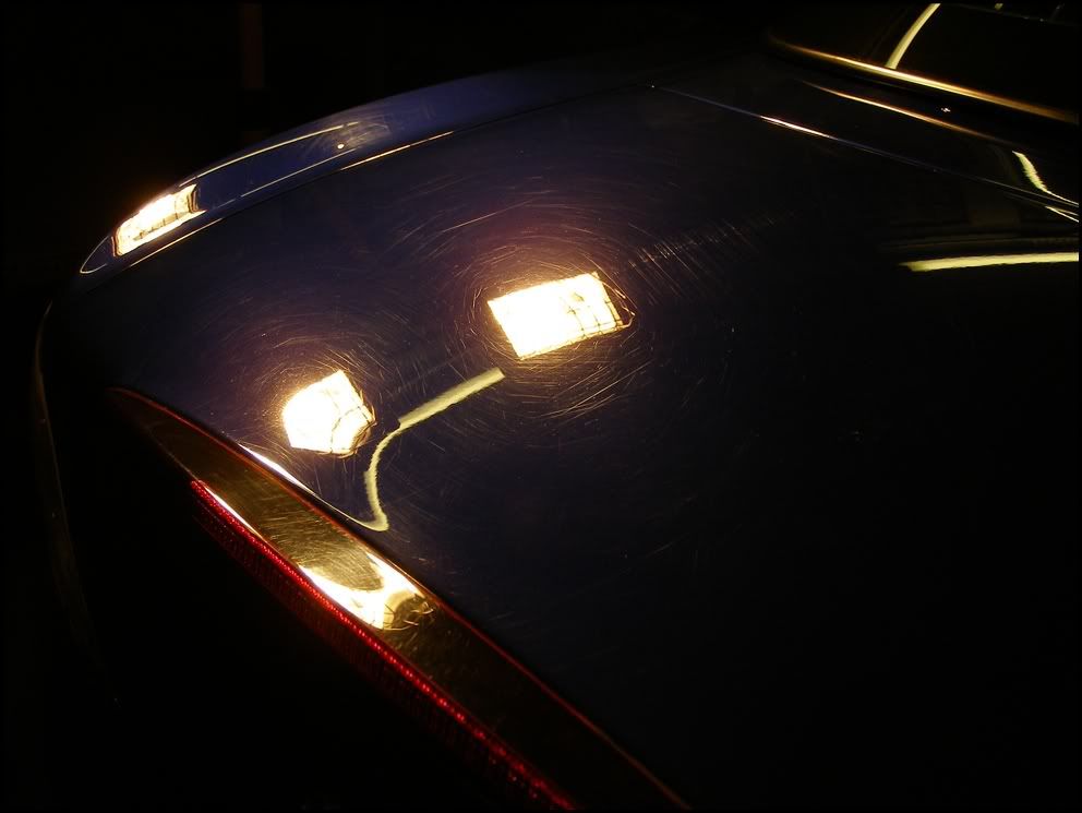 Under the halogens the state of the paintwork became apparent quickly, serious swirls and deep scratches not visible by eye outside, but definately under intense light.